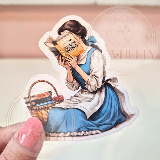 Wing Leader Maiden Book Reading Sticker - Waterproof Glitter or Glossy Stickers 2.75" Size Customizable for Kindle, Book, or Tablet